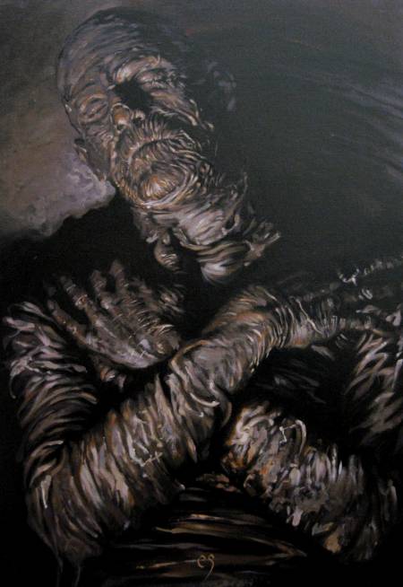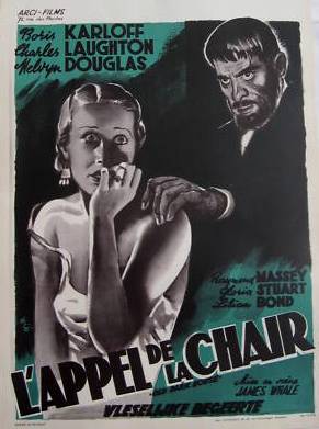 Pero no se vayan todavía, no me olvido de Morgan, el mayordomo mudo, bebedor y lúbrico perseguidor de Gloria Stuart. Con barba y nariz rota, Morgan, incorporado eficazmente -como siempre- por un Boris Karloff primorosamente maquillado por el genio Jack Pierce, tuvo una campaña publicitaria, que se reflejo como prólogo del film: