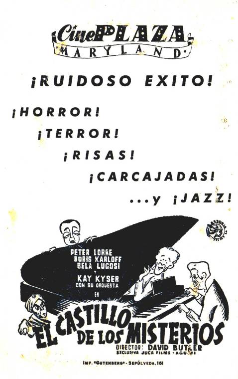 La película se llamó You´ll Find Out y se llegó a estrenar aquí como El castillo de los misterios. La dirigió el prolífico David Butler, director también de la rareza Una fantasía del porvenir (Just Imagine, 1930) .