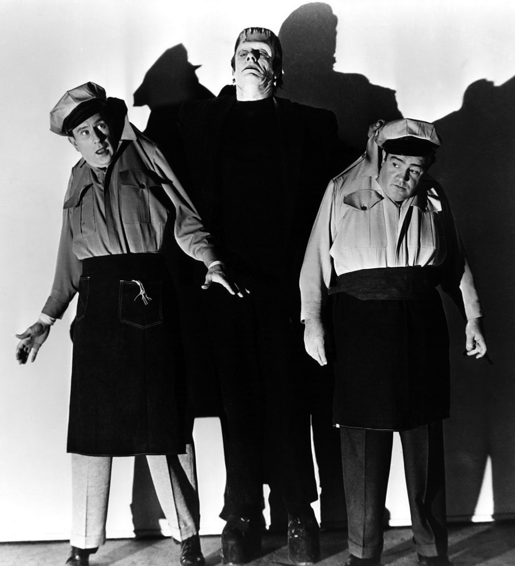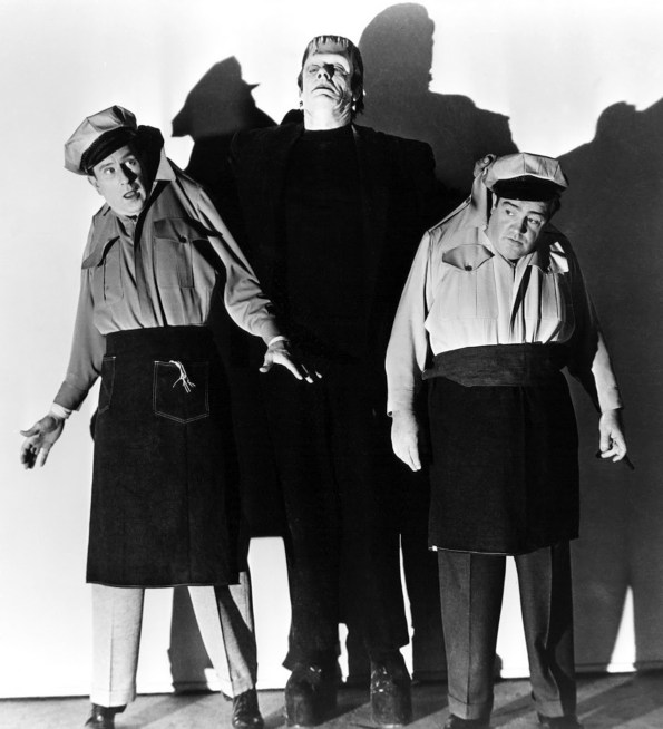 Ya no quedaba mucho por hacer con los atormentados monstruos. El siguiente proyecto, en linea con los anteriores cócteles de monstruos se pensaba titular El cerebro de Frankenstein, pero convirtiéndolo en una comedia protagonizada por los cómicos que estaban salvando de la bancarrota a Universal (al igual que lo hicieran antes las películas de horror). Abbot y Costello harían blanco de sus humoradas a aquellos monstruos que tanto miedo hicieron pasar a los espectadores dos décadas antes. Pero el resultado no fue tal. Vista ahora no desmitifica a nuestros queridos monstruos, muy al contrario, los ensalza e incluso les ofrece un digno canto de cisne.
