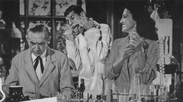 A Karloff no le iba mucho mejor, pues si bien se libró de participar en Abbott y Costello contra los fantasmas (Abbott and Costello Meets Frankenstein, Charles Barton, 1948), en la que hubiera coincidido de nuevo con Lon Chaney Jr., Glenn Strange y Bela Lugosi, no pudo escaparse de la inenarrable Abbot and Costello Meet the Killer, Boris Karloff (Charles Barton, 1949) y Abbott and Costello Meet Dr. Jekyll and Mr. Hyde (Charles Lamont, 1953) en la que Karloff como Henry Jekyll, utilizará su celebérrima fórmula para, en la piel de Hyde, quitar de en medio a todo el que se entrometa en sus planes. Una, a pesar de todo, cuidada producción, con buen vestuario y que incluso resulta atmosférica en algunos momentos. Las transformaciones están muy conseguidas, y más teniendo en cuenta que Hyde era interpretado por Eddie Parker, un especialista cuya caracterización se realizaba mediante máscara.