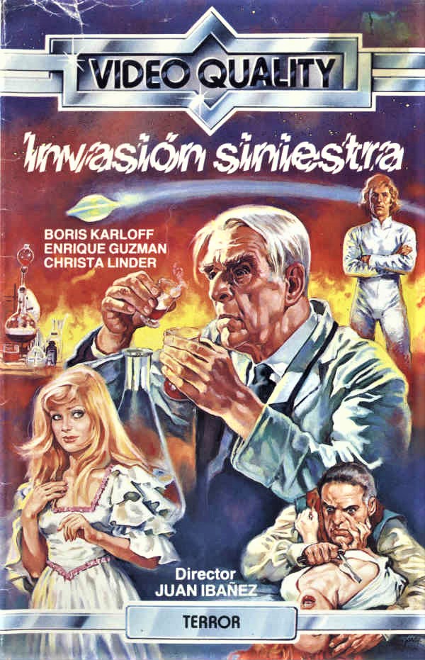 Las cuatro últimas películas de Boris Karloff son subproductos mexicanos producidos por Luis Enrique Vergara. Jack Hill rodó las escenas con Karloff en un estudio de Los Angeles y con estas tomas, ya en México, Juan Ibáñez rodó el resto con actores autóctonos. En tres de ellas Boris Karloff realiza papeles de –Pinche– Mad Doctor. Repasémoslas brevemente: Invasión siniestra (1971) está ambientada en Gudenburg en 1880 y en ella como Dr. Mayer inventa un rayo tan poderoso que provoca que los extraterrestres envíen a un emisario para que cese las investigaciones, pues podría provocar la destrucción del universo. Todo realizado con una alarmante pobreza de medios, abundancia de anacronismos y un extraterrestre ye-yé con traje plateado. Un horror. Como también lo fue La muerte viviente (1971) donde el veterano actor como Dr. Carl van Moulder controla las ondas telequinésicas del cerebro. Vudú, adoradores de serpientes y experimentos con LSD ¿Lo mejor? Que sale la exuberante Tongolele. Finalmente, porque todo tiene un final, llegó La cámara del terror (1971) en la que Karloff, como el Dr. Mantel, descubre una roca semiviva que se alimenta de la sustancia desprendida por las personas atemorizadas, todo lo cual lleva al buen científico a experimentar con jovencitas que se encarga de secuestrar un enano a su servicio.
